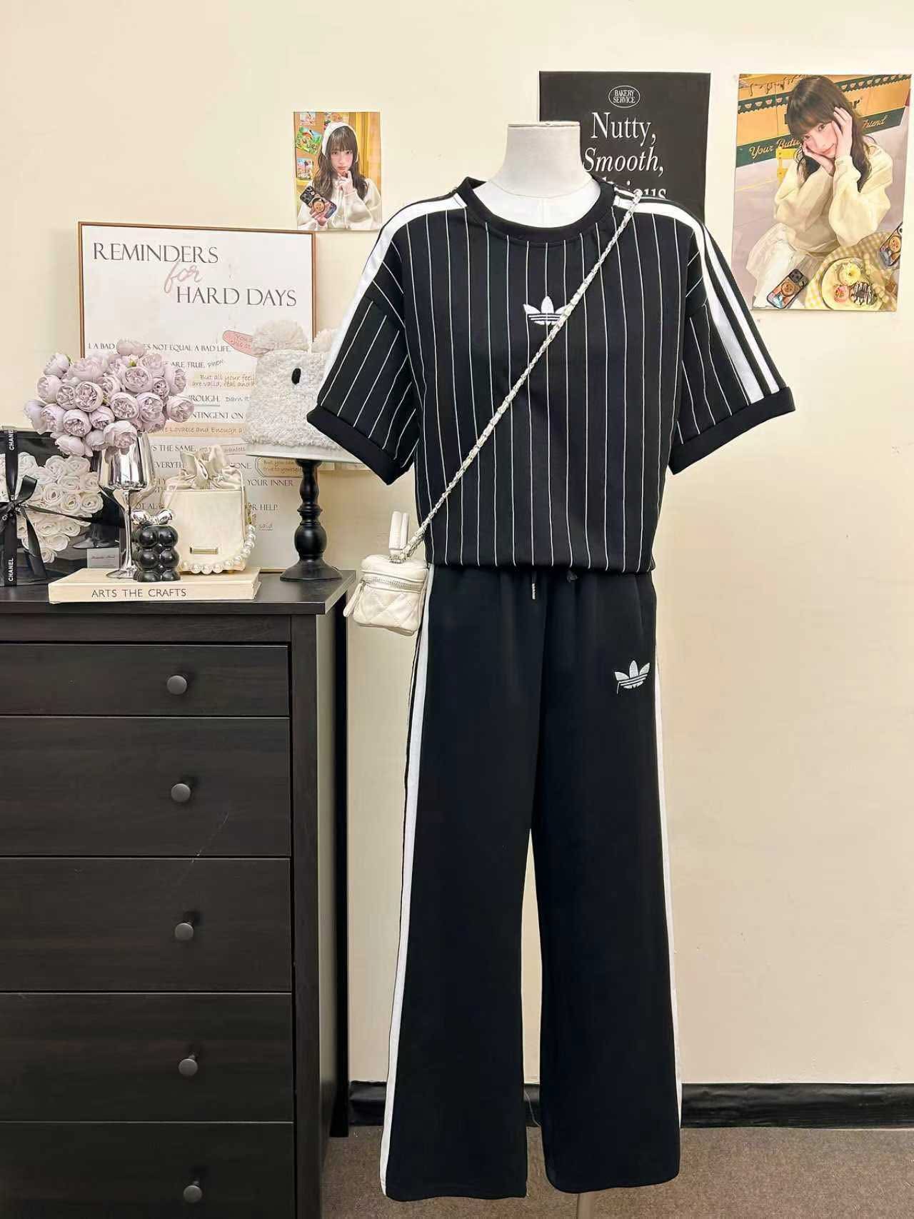 Upgrade your everyday wardrobe with this chic Adidas inspired women’s tracksuit set, designed for both comfort and effortless style. This two-piece outfit includes a modern striped short-sleeve top paired with matching wide-leg pants, creating a coordinated look that’s perfect for on-the-go lifestyles or relaxed days.